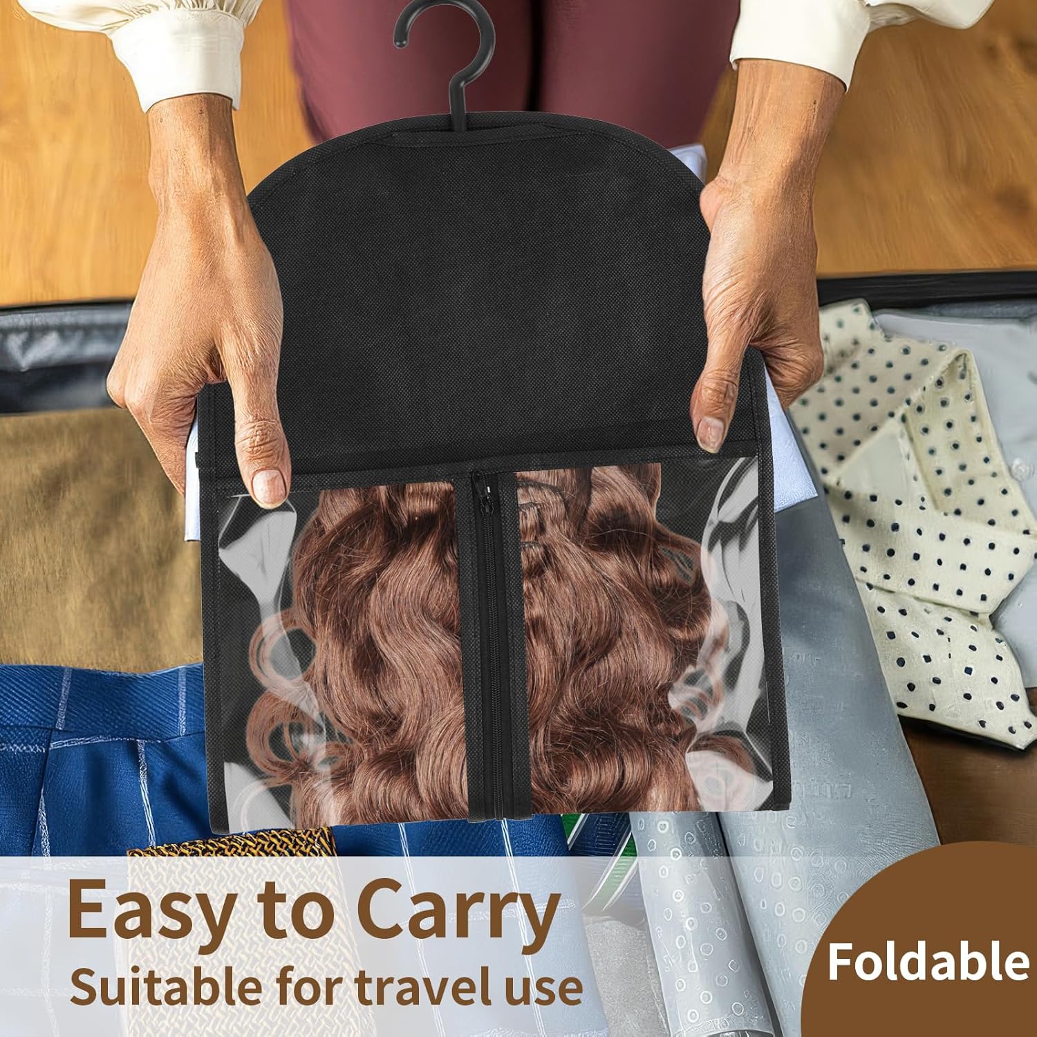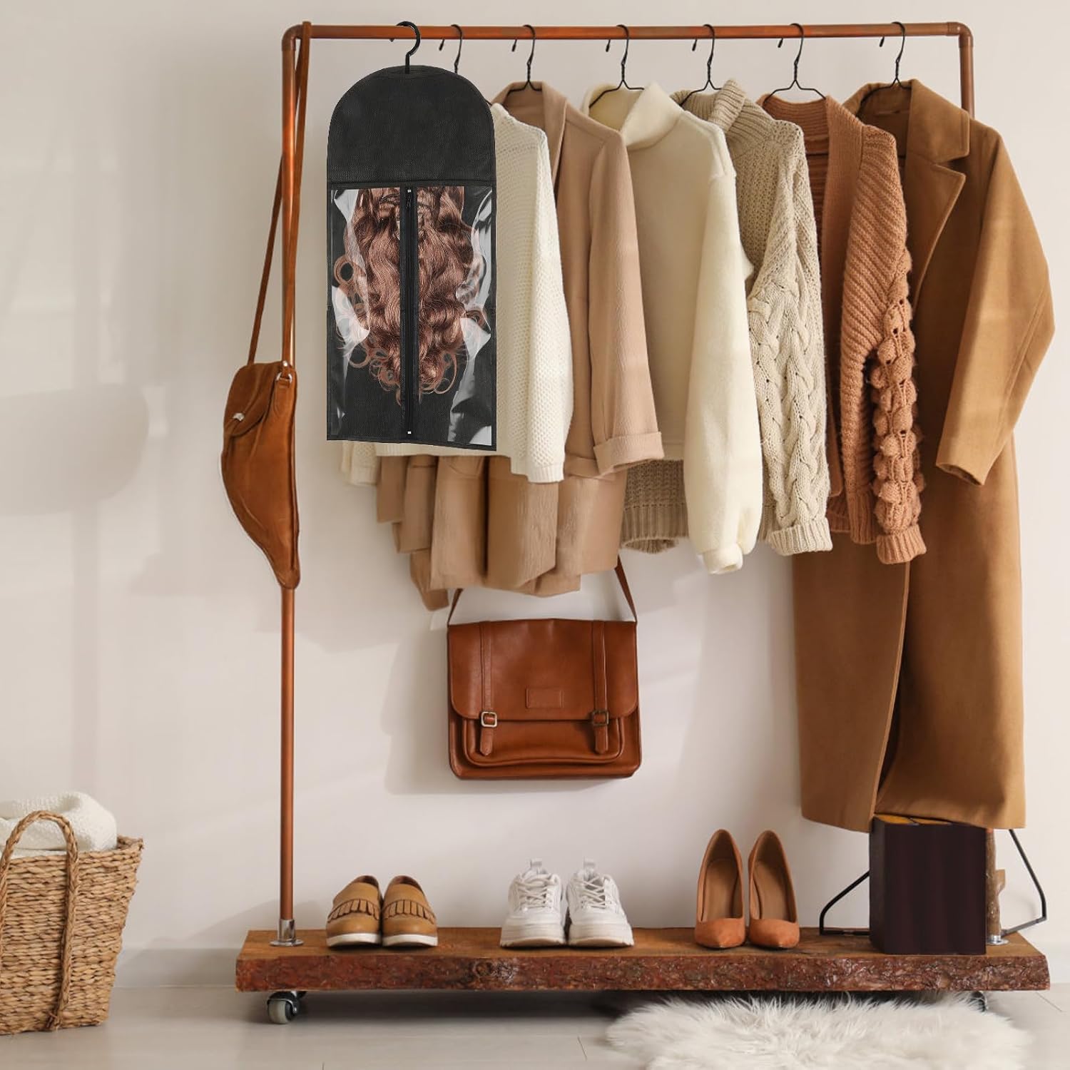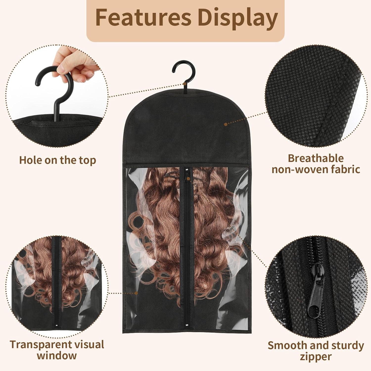 2 pcs Portable Topper Storage Bags with Hanger Black Hair Extension Storage for Multiple Topper
