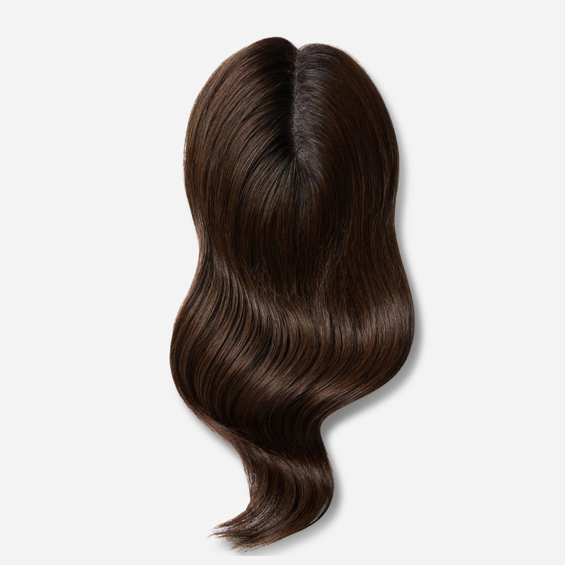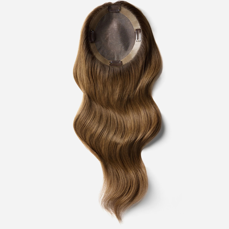 A free part hand-tied human hair topper, high quality Brazilian virgin hair, silky healthy hair texture. The hair can be styled and dyed like your own hair.