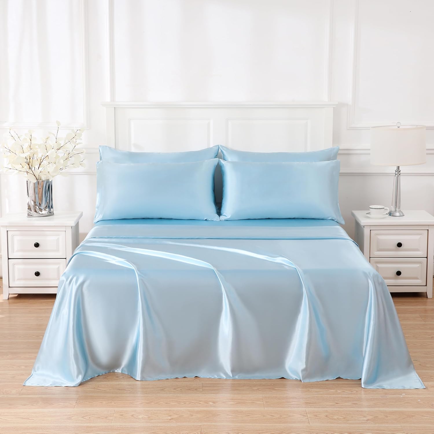 4 Piece Luxury Satin Bed Sheets Set with Pillowcases - Ultra Soft & Silky, Hypoallergenic