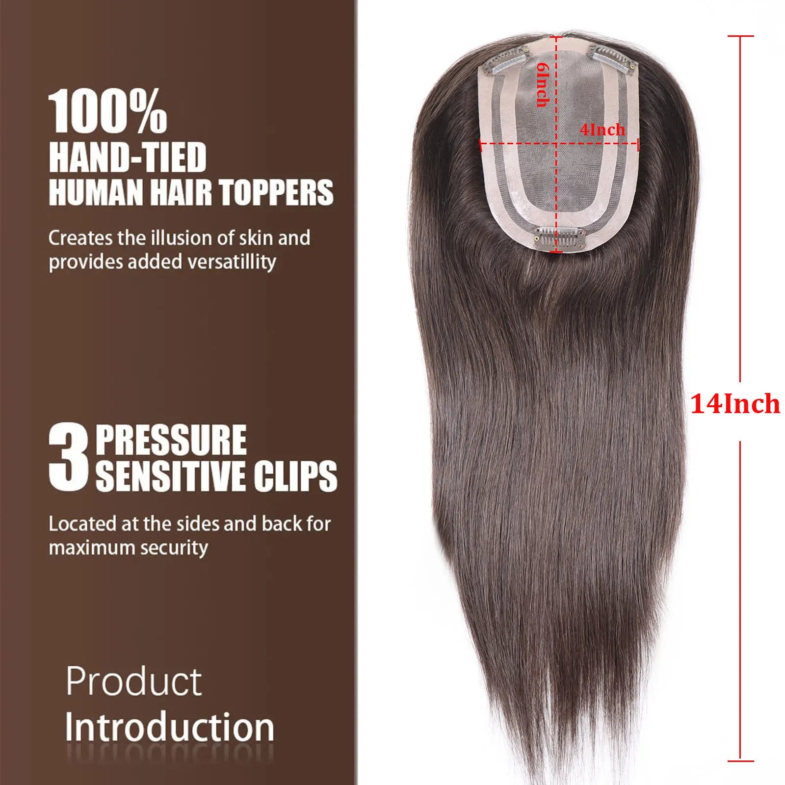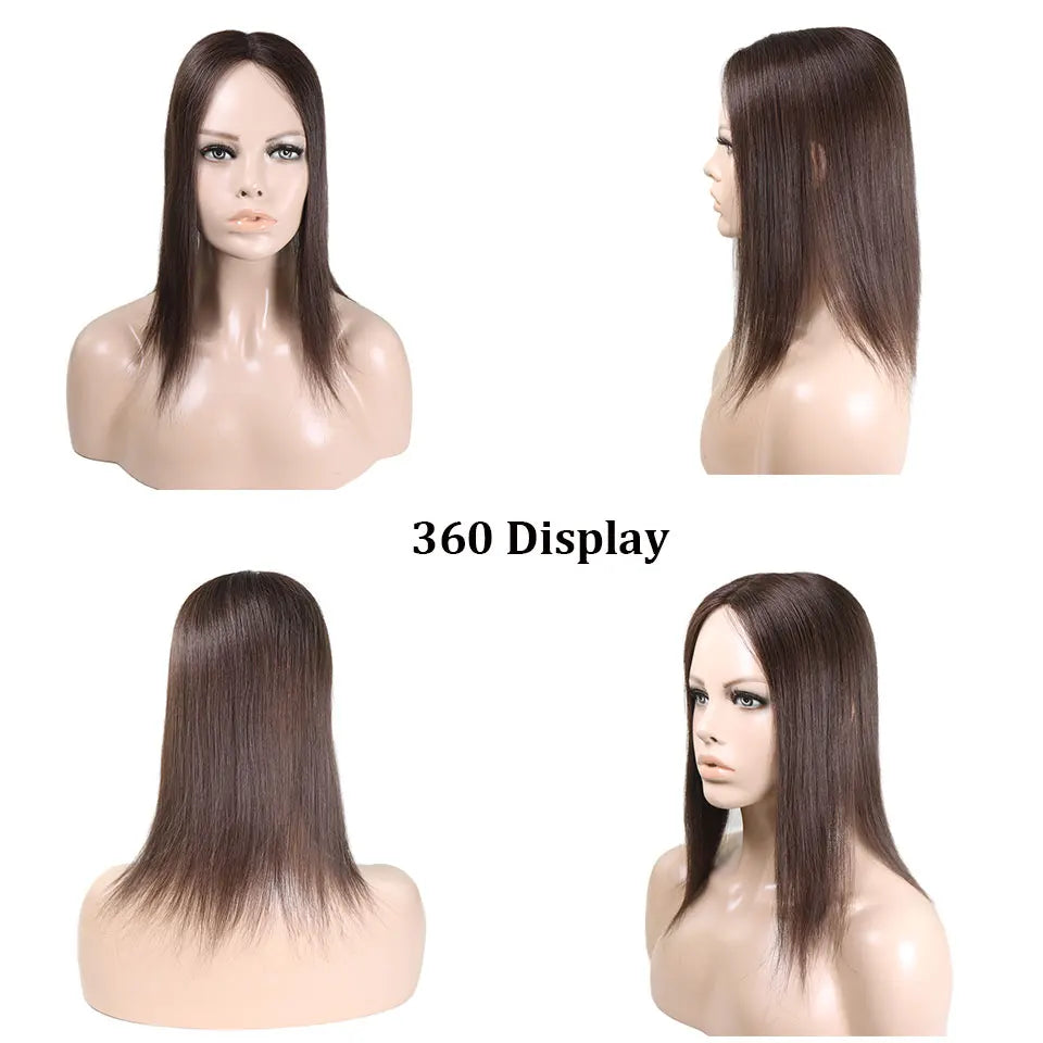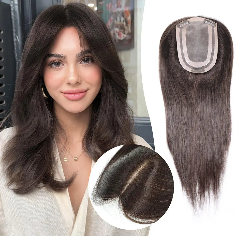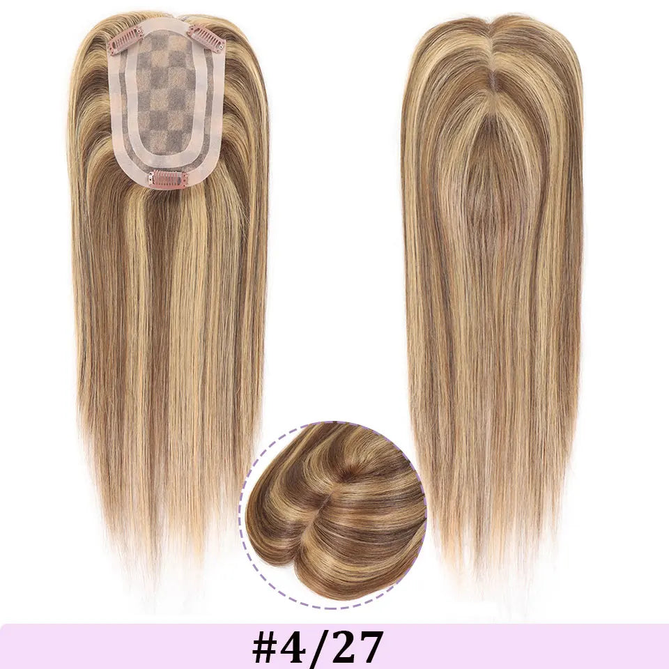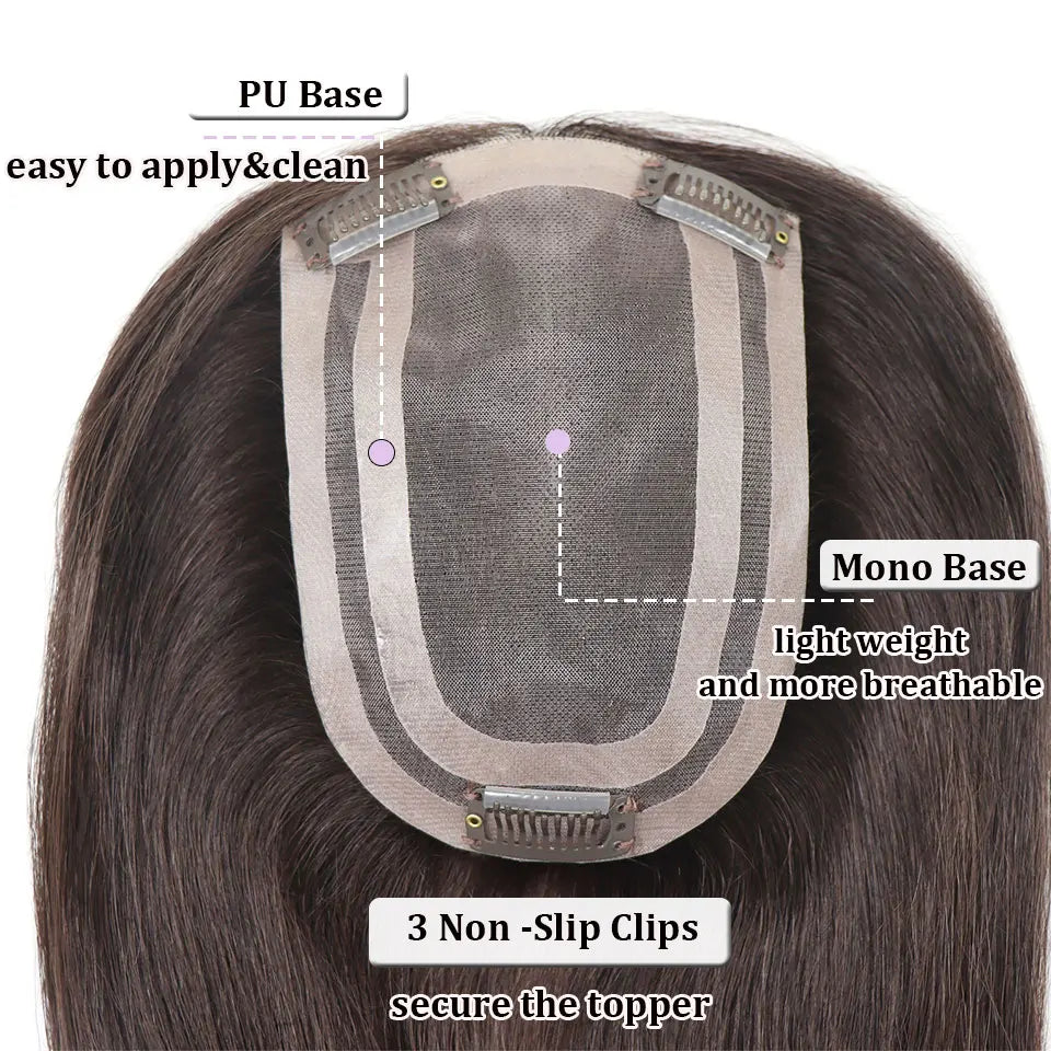 4x6in Human Hair Topper For Woman Clip-In One Piece Invisible Toupee Hair MONO&PU Base Hairpiece