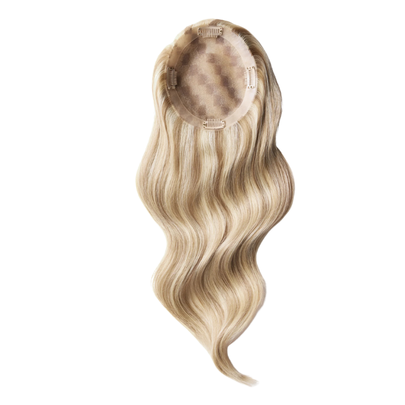 A free part hand-tied human hair topper, high quality Brazilian virgin hair, silky healthy hair texture. The hair can be styled and dyed like your own hair.