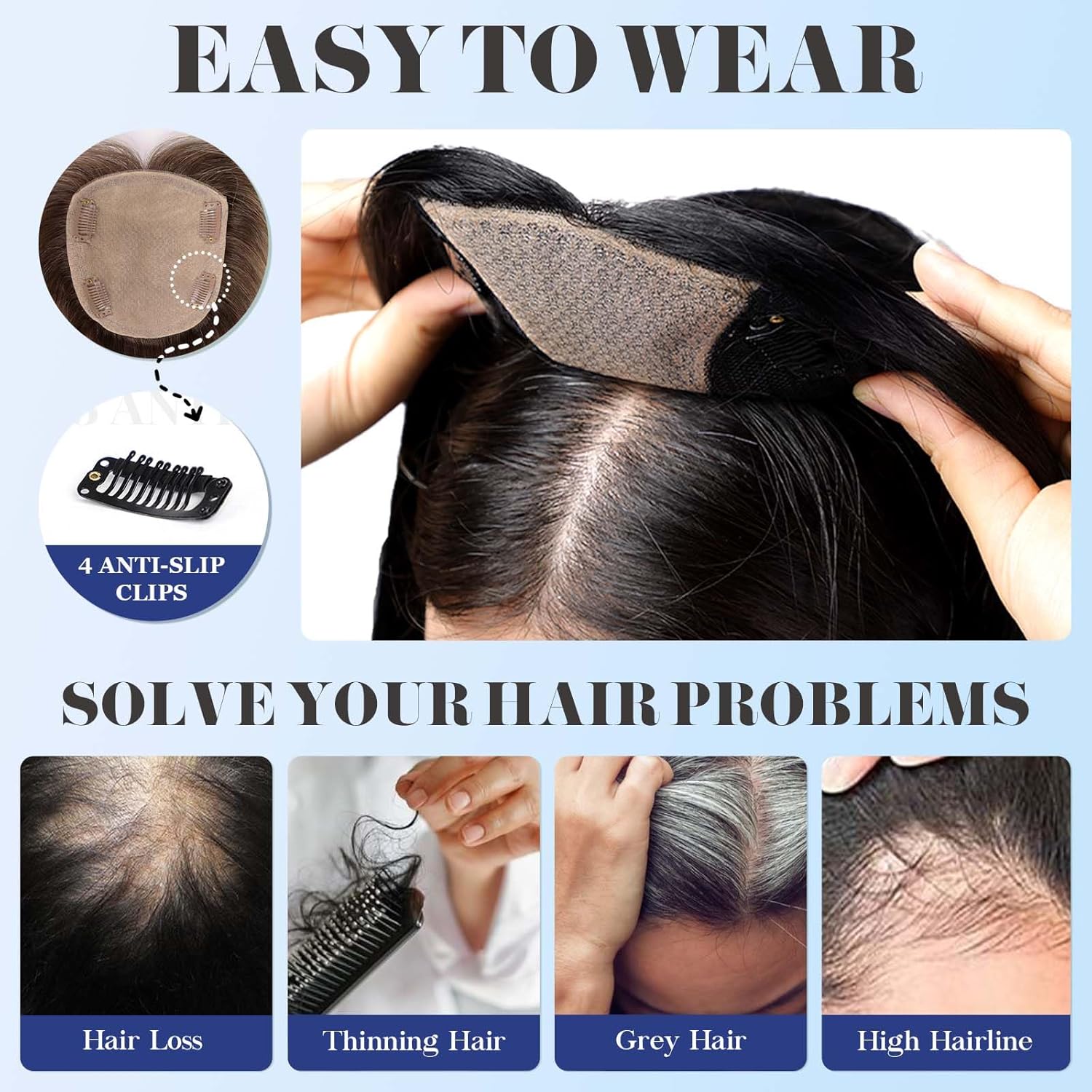 5"*5" Large Base Ombre Light Blonde Hair Toppers for Women 100% Human Hair Topper