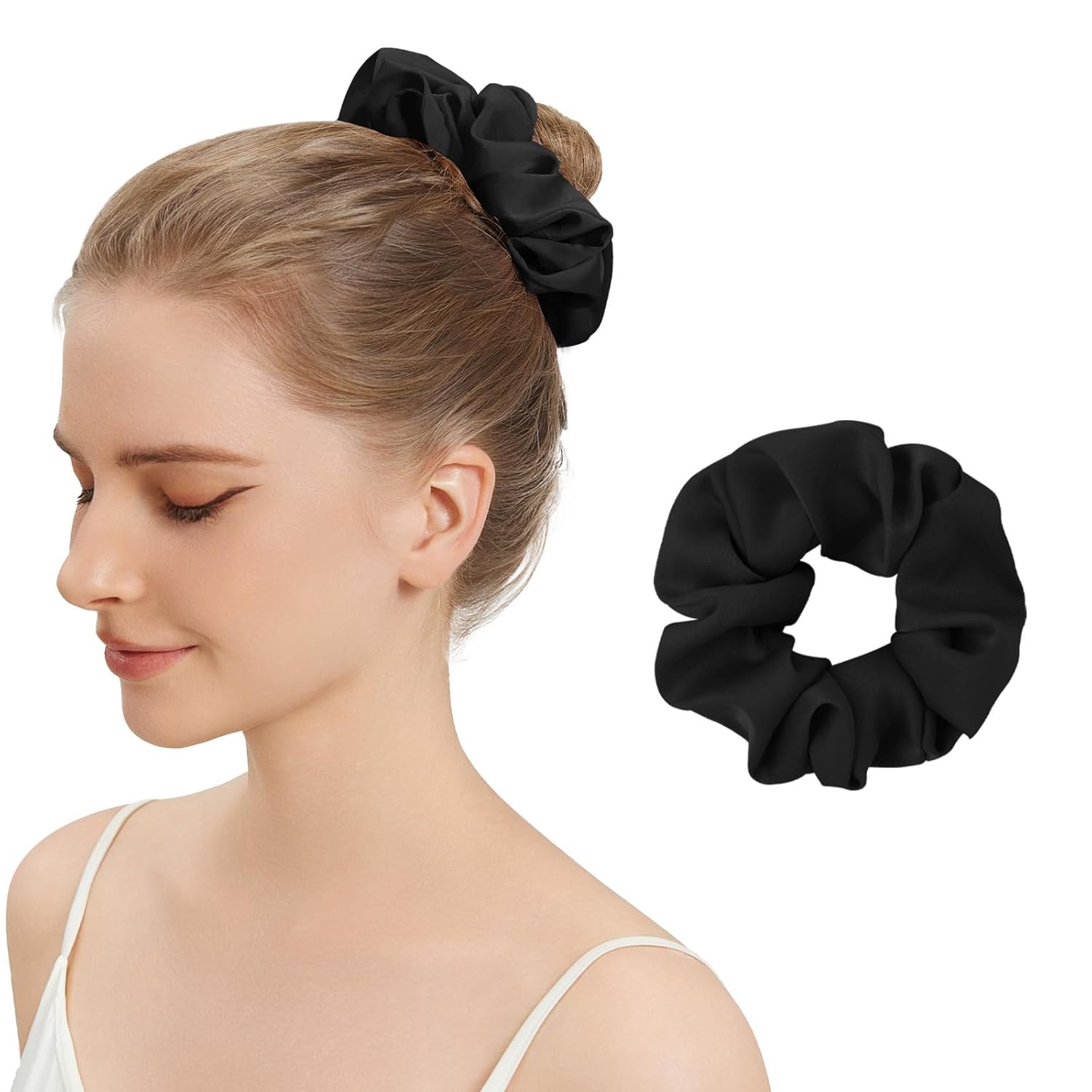 6PCS 100% Mulberry Silk Scrunchies Set, 2 Large and 4 Thin Silk Hair Ties for Women