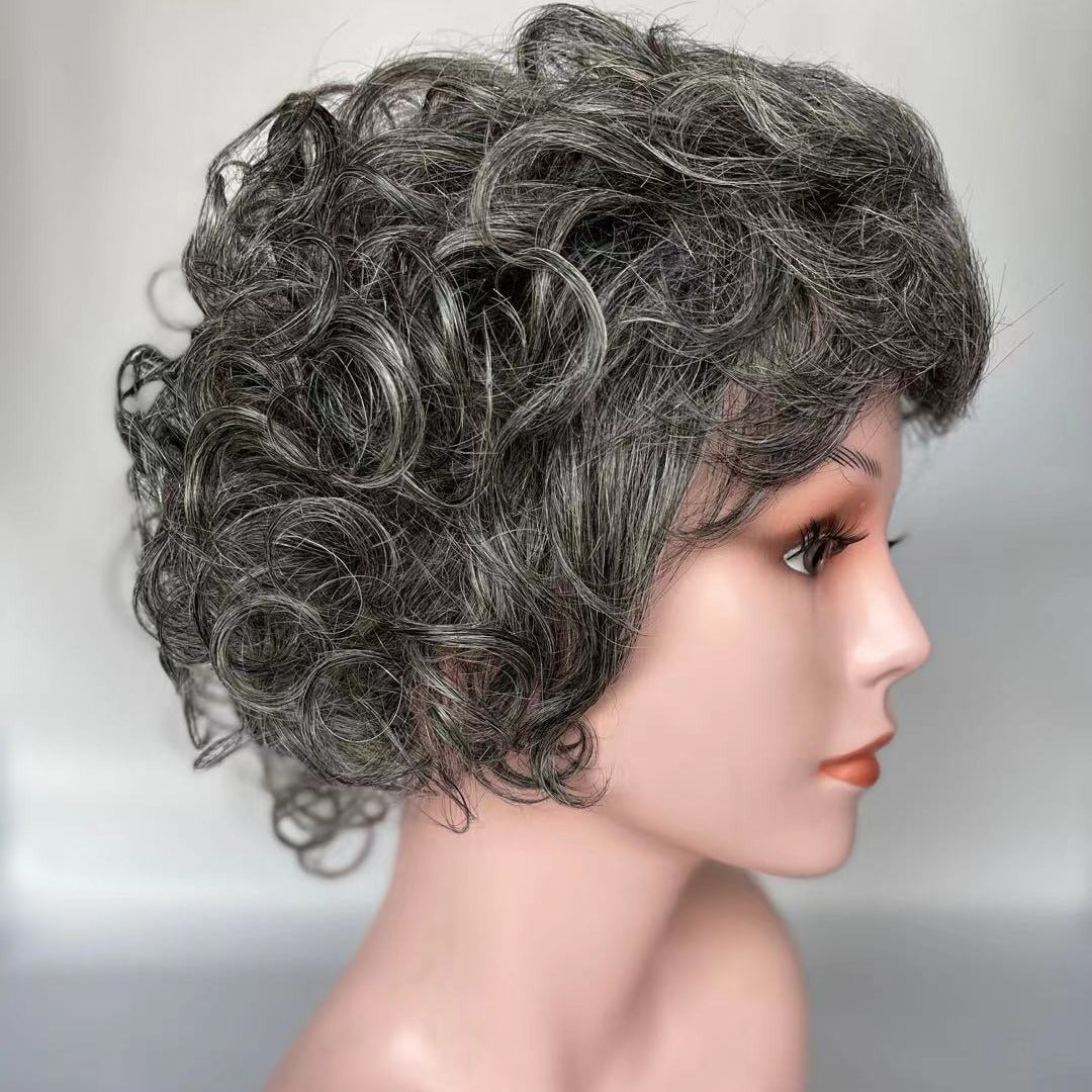 Salt Pepper Wavy Curly Human Hair Wigs for Women