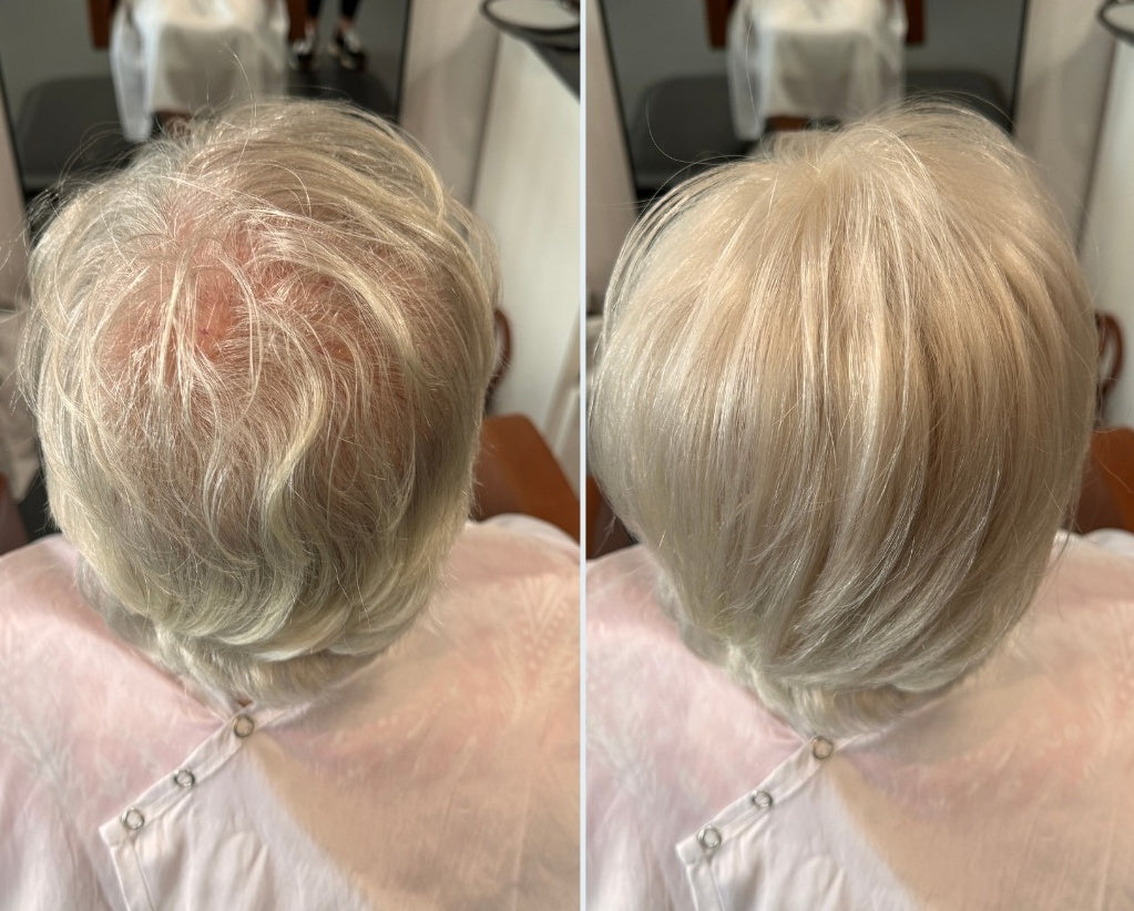 Excellent Handwork: Each Mona Handmade Human Hair Topper is a work of art. Our skilled artisans knot every strand of hair by hand onto a mesh base, replicating the appearance of natural hair growth. This meticulous craftsmanship, with a higher hair density along the hairline and part line, guarantees an authentic and seamless transformation with this hairpiece.
