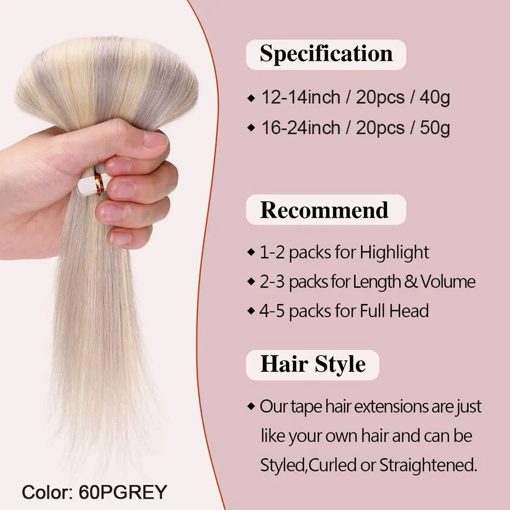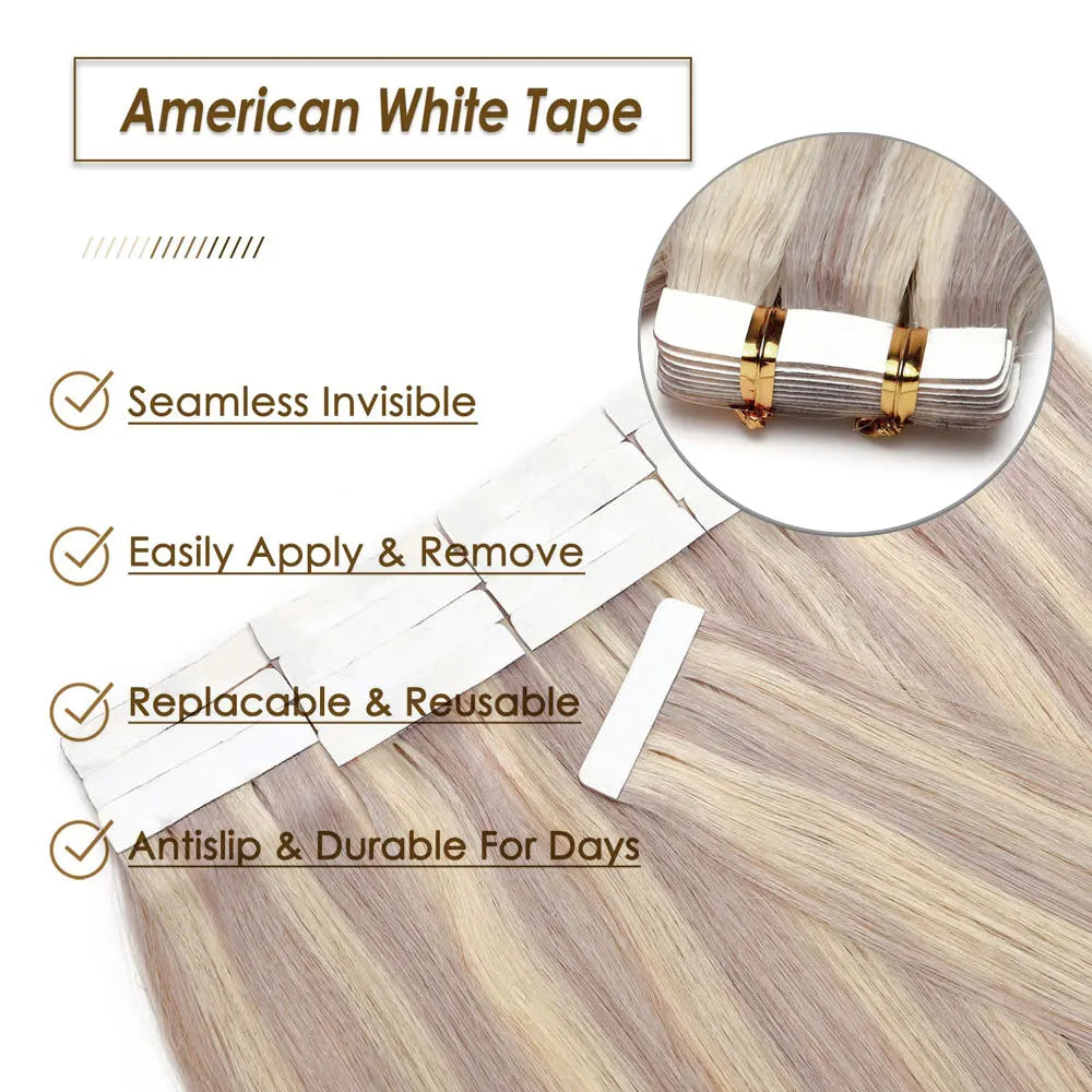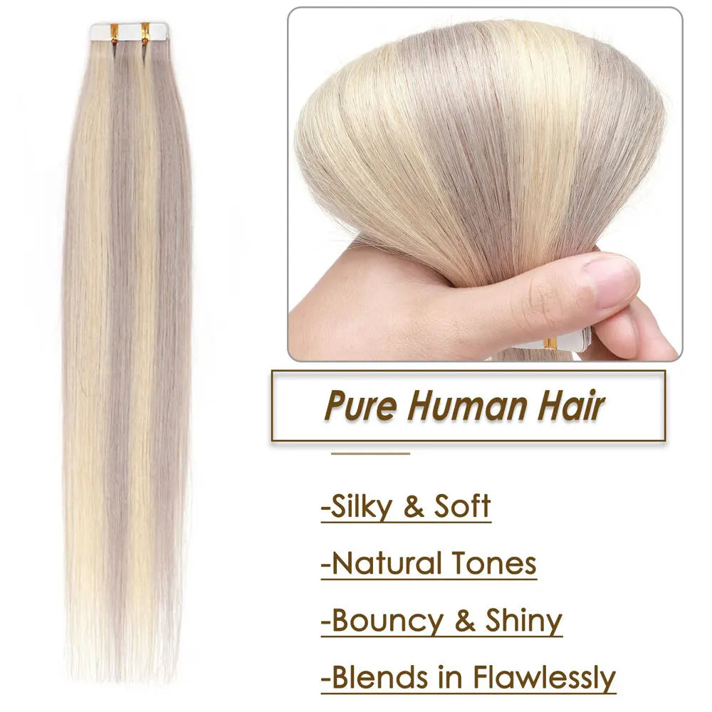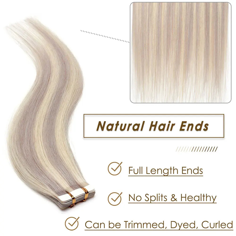 Tape in Hair Extensions 100% Real Human Hair Seamless Skin Wefts Tape in Hair Extensions For Women Highlight 20pcs 50g
